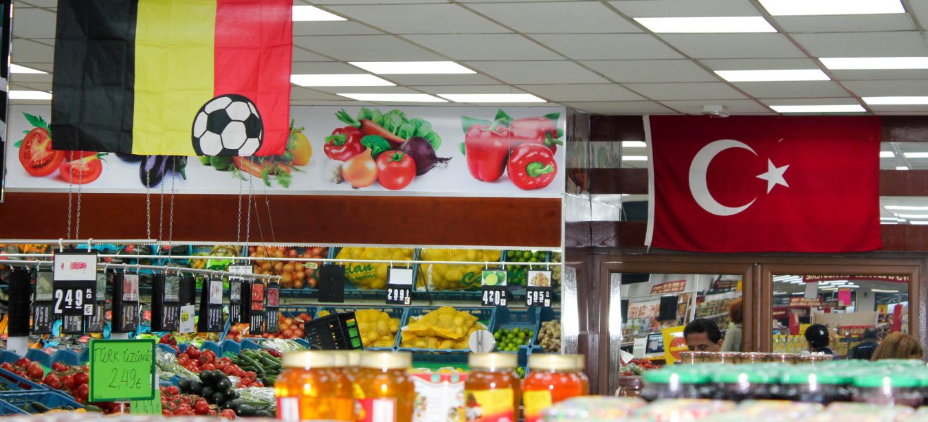 Entre les aliments colorés qui garnissent les étals, la boucherie, la boulangerie, la machine à café qui moud le grain dans une douce odeur épicée, le personnel souriant et la voix d’Orhan Ölmez, chanteur folklorique turc, qui coule des enceintes, on se sent transporté de l’autre côté de la Méditerranée. Cela dit, par endroits, le produit oriental et son pendant occidental se partagent la vedette. Beurre belge, fromage allemand et saucisse turque se côtoient, en gros ou au détail, à prix variés, mais toujours dans une recherche de qualité, quelle que soit l’origine du produit.