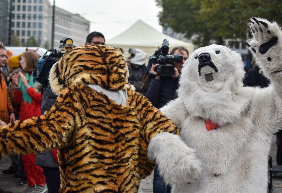 C’est en se déguisant en animaux que l’Ensemble Zoologique de Libération de la Nature appelle les politiciens à prendre des mesures responsables et humaines sur des sujets aussi cruciaux que l’environnement et la santé publique. « On veut amener de la radicalité dans le débat. On veut une vraie justice climatique, mais aussi dénoncer les multinationales et leur rôle d’influence dans les négociations des COP », précise sous-commandant canard, une membre du collectif qui souhaite reste anonyme.