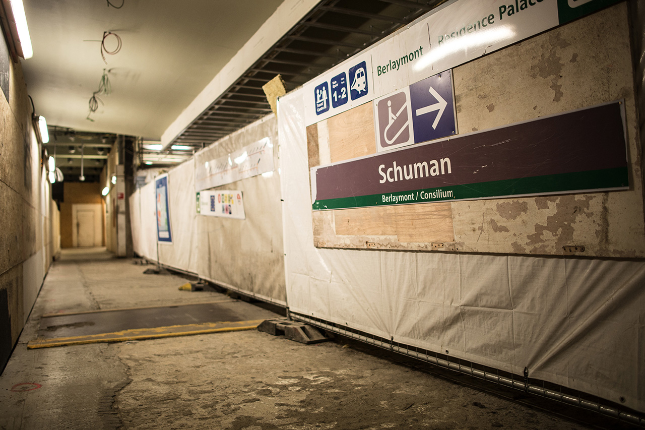 Le rond-point Schuman n'a pas survécu aux derniers travaux. Il semble aujourd'hui abandonné. Seule trace de vie, un banc peint en bleu par une riveraine.