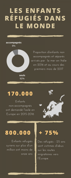 « Le nombre d’enfants réfugiés et migrants voyageant seul s’est multiplié par cinq depuis 2010. » C’est le résultat d’un rapport publié cette année par l’UNICEF. L’Organisation des Nations Unies nous dévoile aussi que « dans le monde entier, près de 50 millions d’enfants ont été déracinés. » Soit environ cinq fois la population de la Belgique. De quoi remplir quelques crèches…