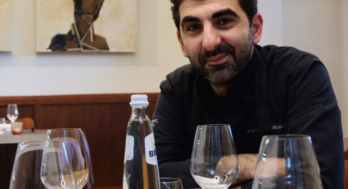 À son arrivée à notre table, Karen Torosyan pose son café avant de nous tendre une main imposante. Taille robuste, cheveux waxés en arrière, nez fort et barbe couleur charbon. Sous d’épais sourcils, le chef nous sourit de ses yeux pénétrants et doux. « Vingt minutes, montre en main ! », prévient-il avec un léger accent à peine perceptible.