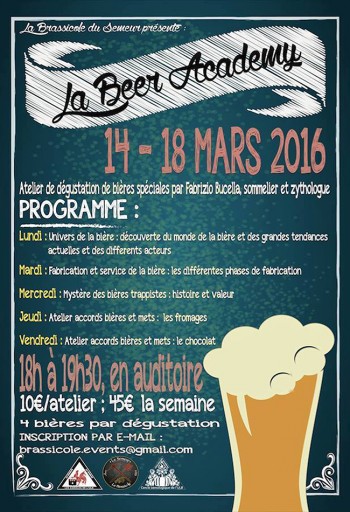 Souvent vue comme simple pils, la consommation de bière s’inscrit dans un rapport à la beuverie et plus particulièrement dans les universités. En qualité d’expert du produit, Fabrizio Bucella souhaitait faire changer les mentalités. Il a donc mis sur pied la Beer Academy, une série de conférences-ateliers de dégustation consacrée au monde de la bière.